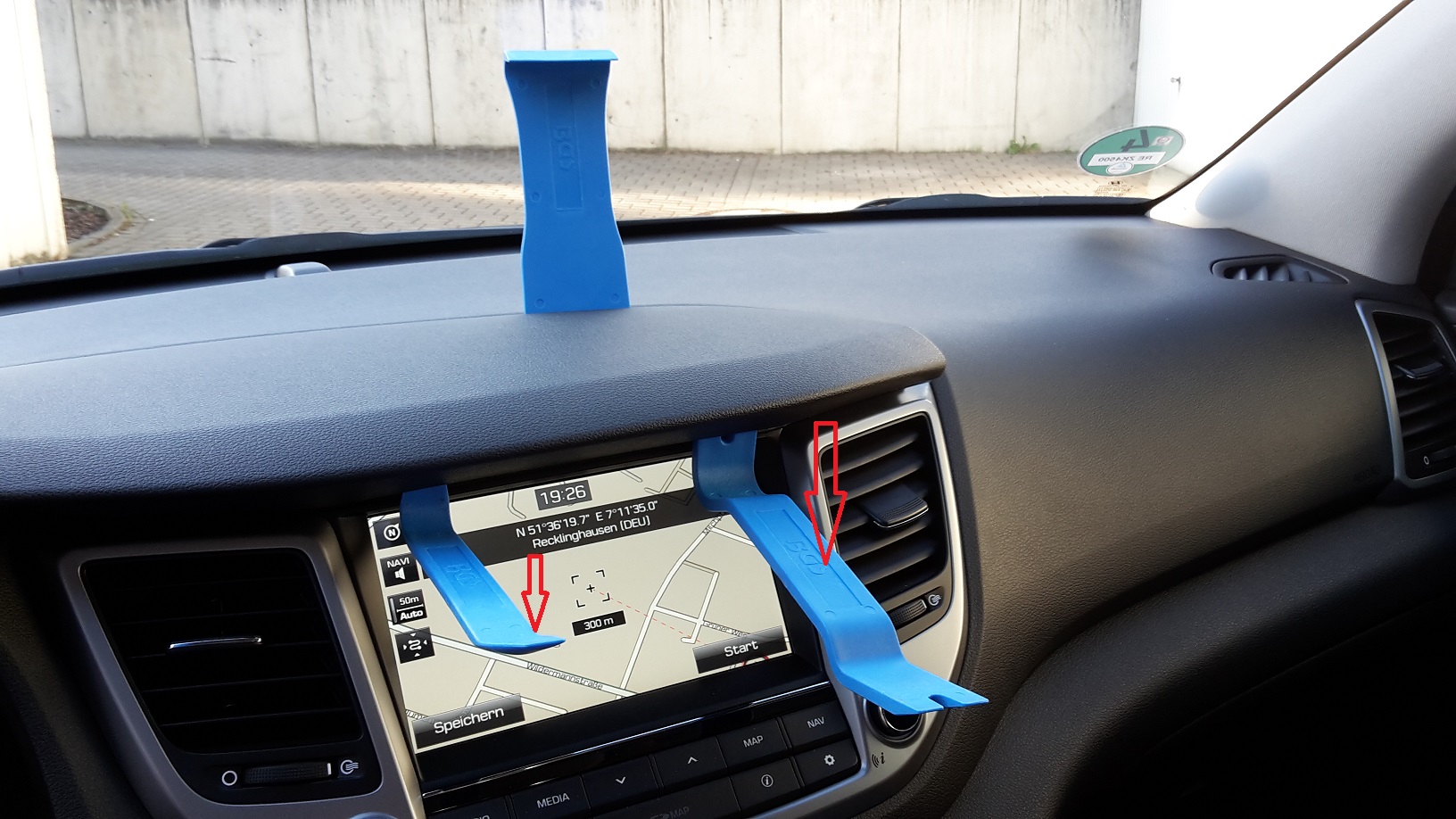 Für alle, die die Abdeckung demontieren wollen : die unteren Hebel habe ich jeweils abwechselnd nach unten gedrückt während ich den oberen breiten Hebel mit Links- und Rechtsbewegungen in Bewegung hielt.Nachdem sich die ersten Klammern gelöst haben, habe ich mich nach links weiter vorgearbeitet. Das ging dann aber relativ einfach. Nur die Abdeckung erst einmal gelöst zu bekommen, war die Kunst.(Die unteren Hebel sind nicht am Touchpad abgestützt, sondern an dem schwarzen Rahmen am Radio.)