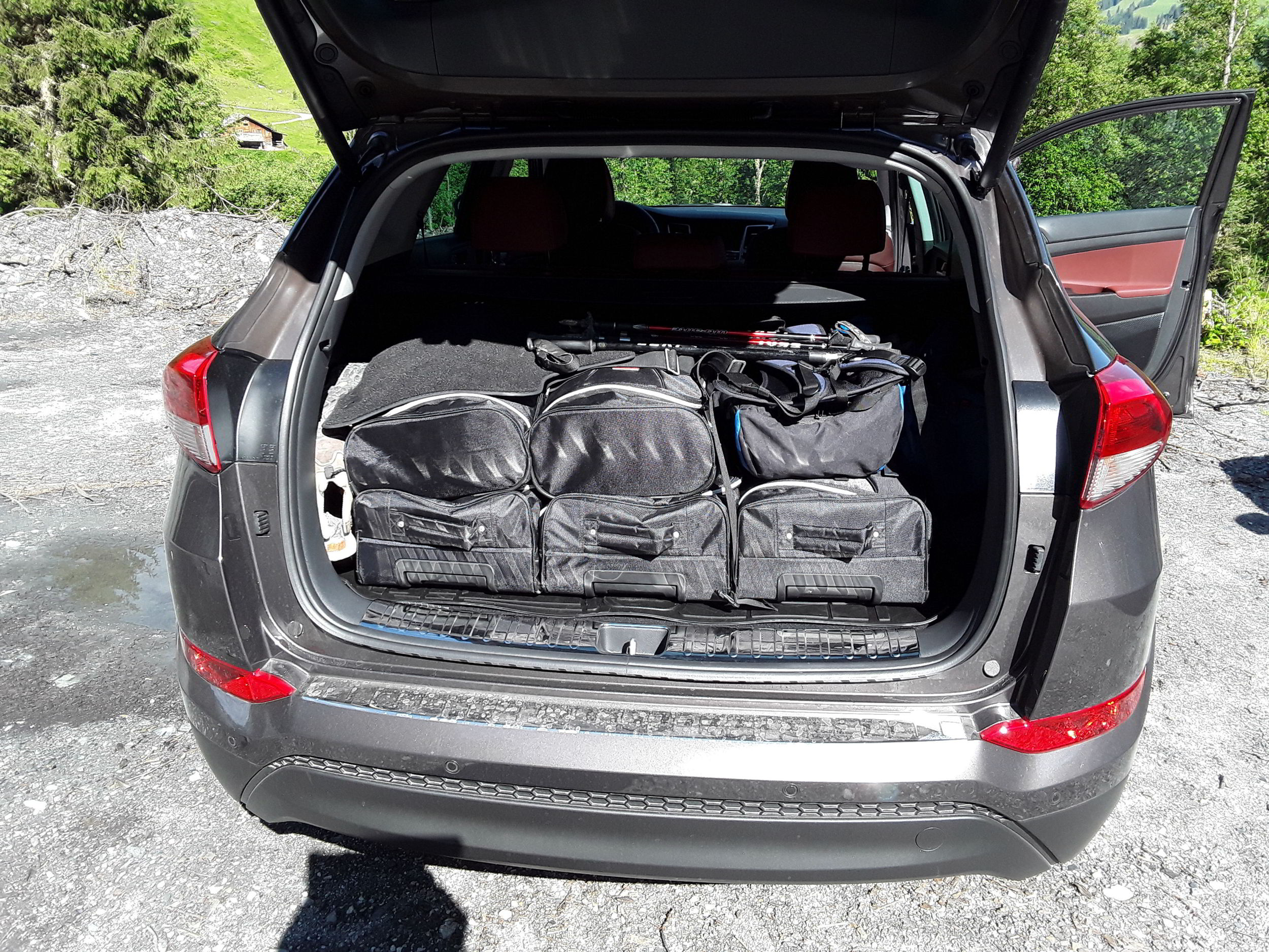 5 Teile des Kofferraumsets und 2 Wanderrucksäcke schön verstaut.P.S. ja ich weiss Dreck auf den Schutzleisten^^ Liegt aber daran dass ich in Österreich keine Lust hatte dauernd das Auto zu putzen^^